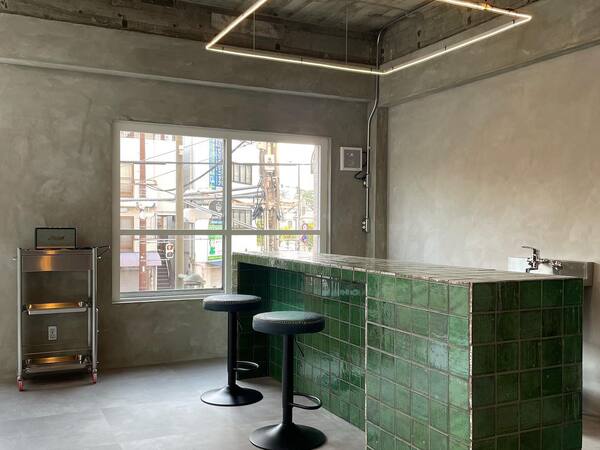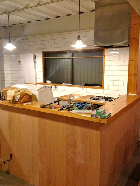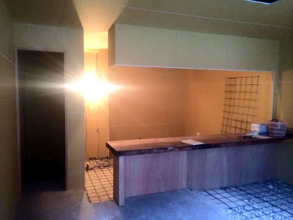 カウンター・ベンチシート・テーブル・壁面左官・ファザード製作